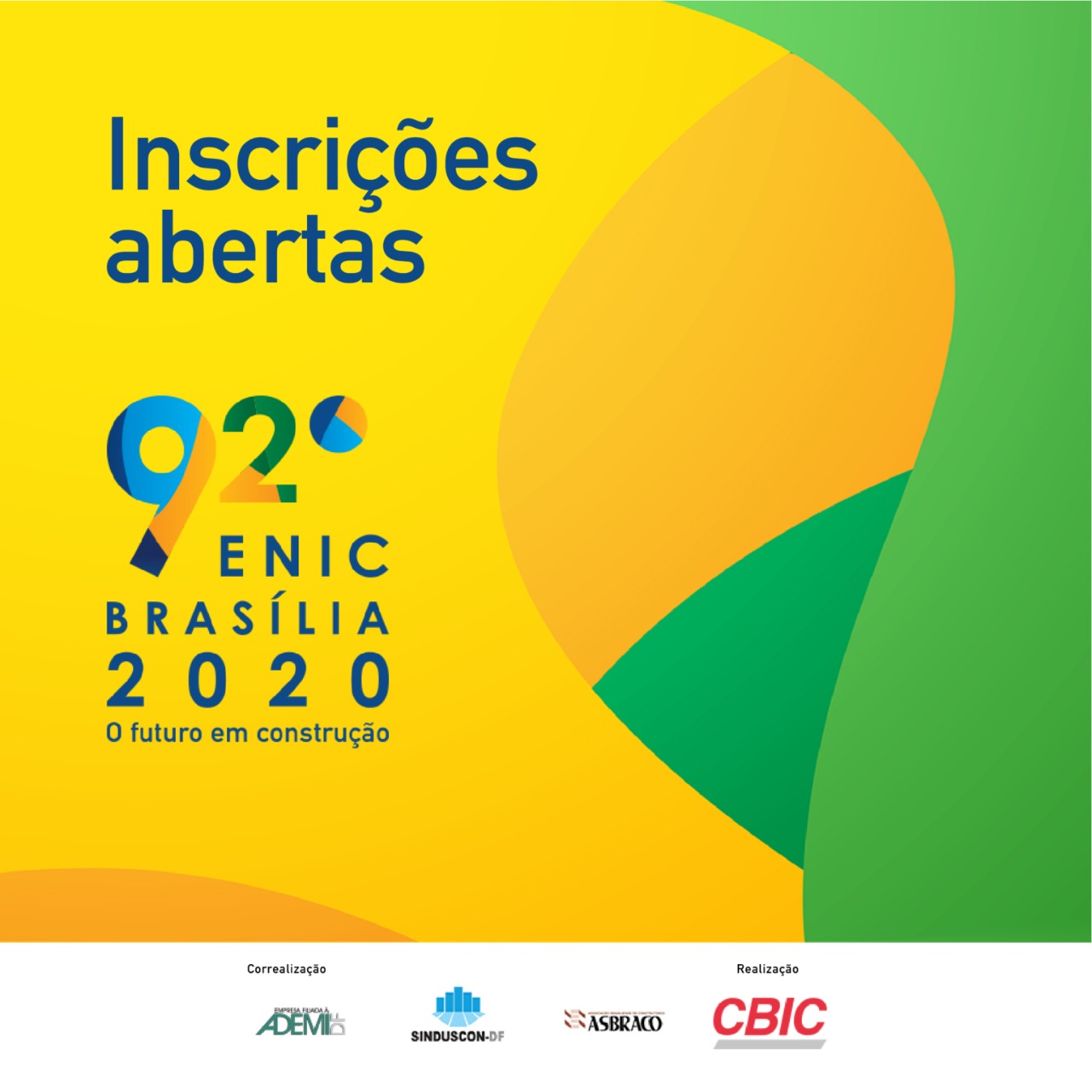 Realizado pela Câmara Brasileira da Indústria da Construção (CBIC), a 92ª edição do ENIC tem como tema central *‘O Futuro em Construção’* e será realizado de 13 a 15 de maio, nas dependências do Centro de Eventos e Convenções Brasil 21, em Brasília. Programação completa no site do evento.