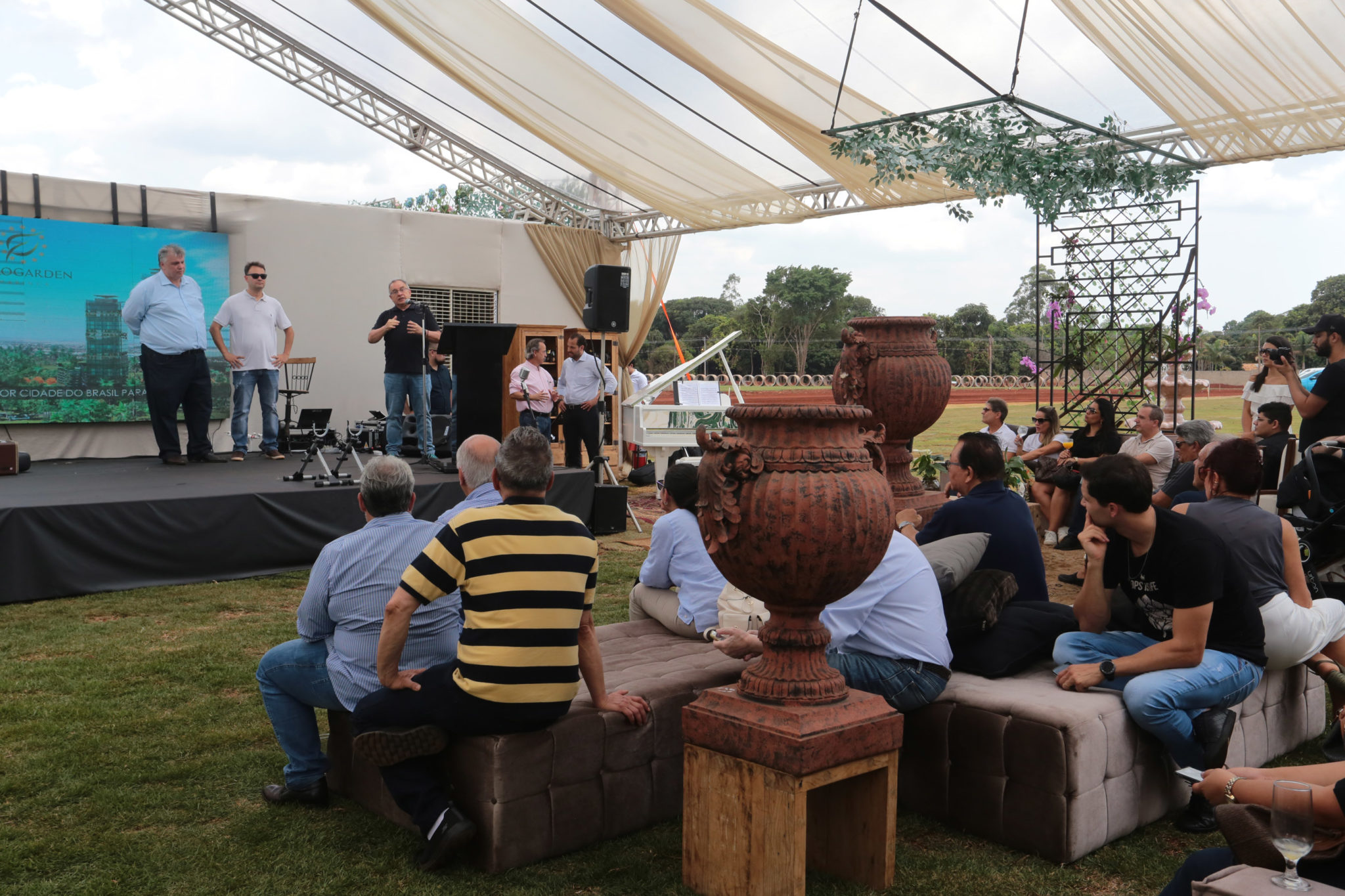 Depois os participantes do Conecti foram conhecer as obras do Eurogarden. Eles foram recepcionados pelo empresário Jefferson Nogaroli, um dos idealizadores do projeto, que será instalado em uma área de 140 hectares. O projeto foi desenvolvido na França e envolve arquitetos de Maringá, São Paulo e países vizinhos.