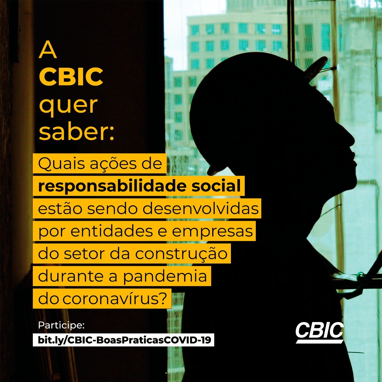 Em função da pandemia da Covid-19, muitas ações de responsabilidade social têm sido desenvolvidas por entidades e empresas do setor da construção em todo o país. Buscando reuni-las em uma única área, para que possam servir de exemplos e serem replicadas em outras localidades, a Câmara Brasileira da Indústria da Construção (CBIC) disponibilizou o formulário ‘Boas Práticas em Responsabilidade Social durante a pandemia do coronavírus’.