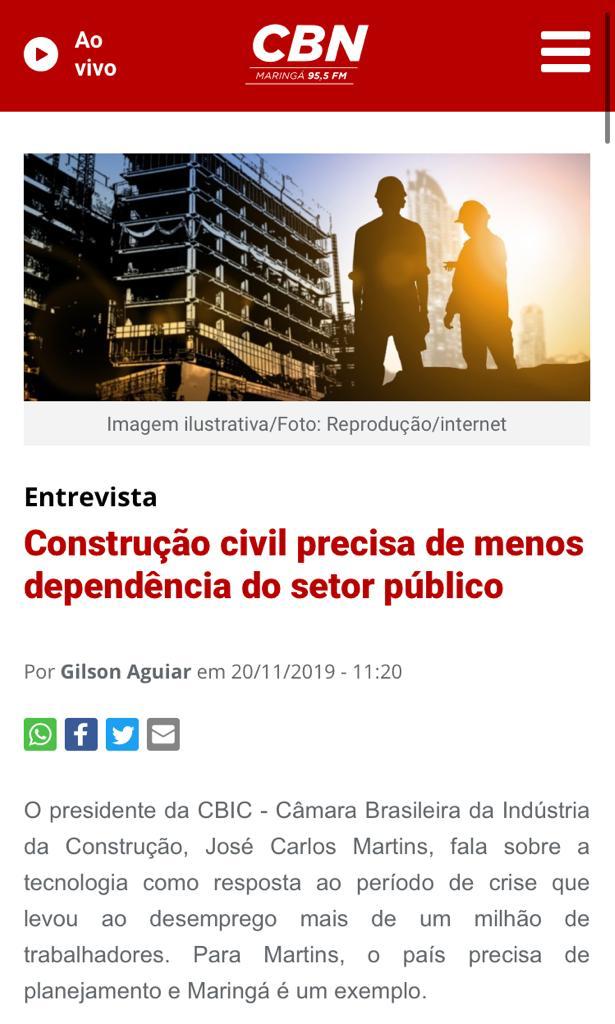 Ao ser questionado pelo apresentador Gilson Aguiar, da CBN de Maringá, sobre a crise que o setor enfrentou nos últimos anos e quais medidas estão sendo adotadas para impulsionar uma recuperação, Martins afirmou que, apesar das dificuldades, a construção continua sendo a área que mais movimenta a economia.