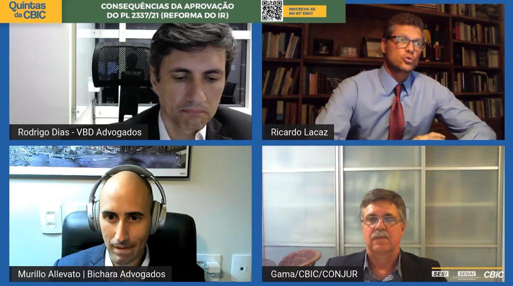 Concorrência desleal com o capital empresarial é uma das consequências apontadas por especialistas tributários, caso o texto do Projeto de Lei 2337/21 (Reforma do Imposto de Renda) seja aprovado no Senado Federal. Para os advogados que participaram do Quintas da CBIC do dia 16/09, o texto vai impactar negativamente a atividade da construção civil como um todo, não gerando emprego e renda para o País.