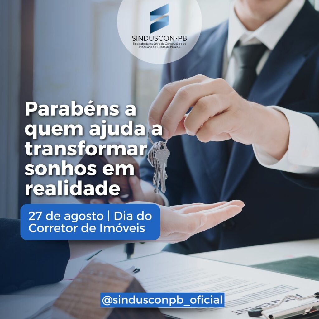 Confira a mensagem da direção do Sinduscon Paraíba em alusão ao Dia do Corretor de Imóveis: